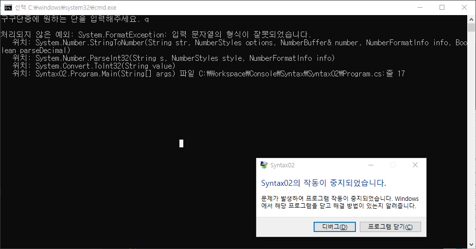 입력된 문자열의 형식이 잘못되었을 때의 예외를 처리하지 않았다.