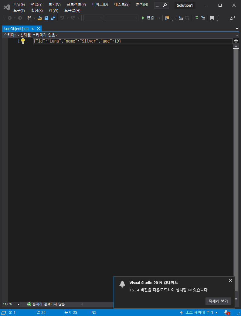 Console Programming/C# Console 2019. 10. 15. 18:24Json은 도구 ----> NuGet 패키지 관리자 ---->솔루션용 NuGet패키지 관리