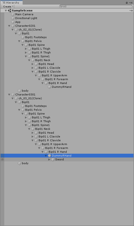 var dummyRHandOfCh0201 = TransformDeepChildExtension.FindDeepChild(character0201Go.transform, "DummyRHand");