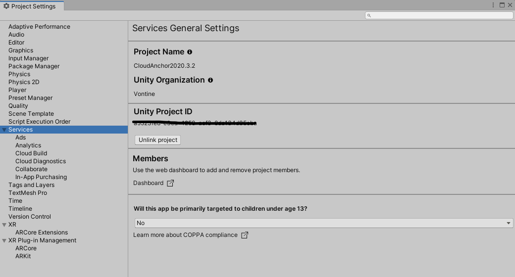 Edit - ProjectSettings - Services -