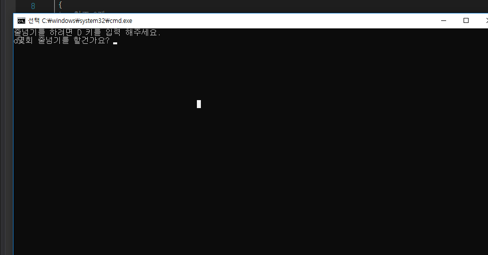 Console.WriteLine("줄넘기를 하려면 d 키를 입력 해주세요.");