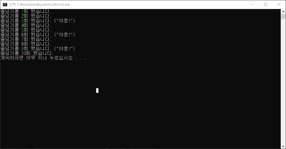 Console.Write("몇회 줄넘기를 할건가요? ");