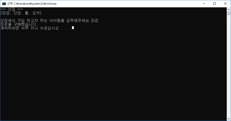 Console.Write("상점에서 구입 하고자 하는 아이템을 입력해주세요.");