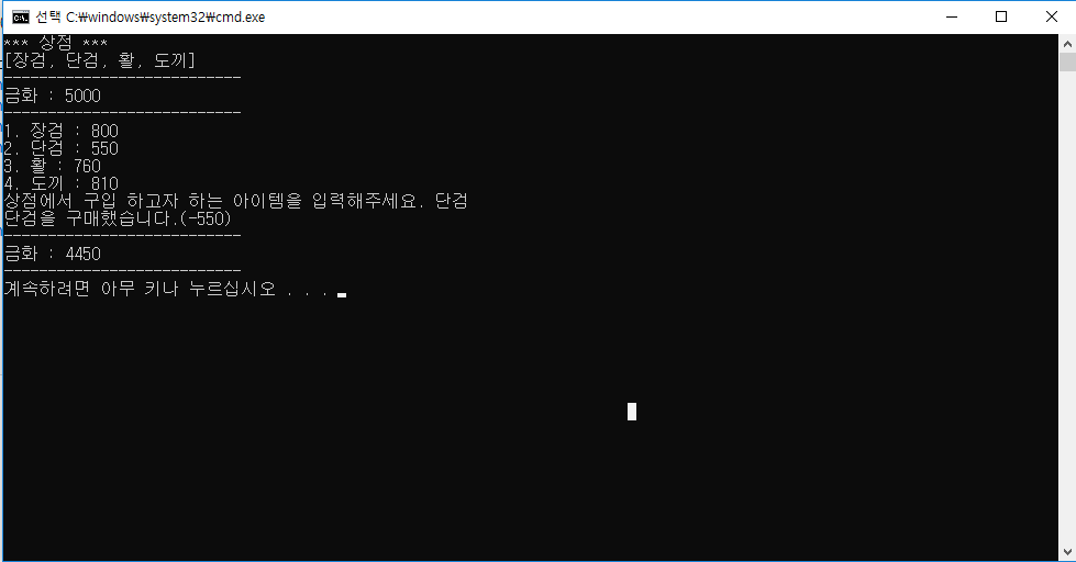 Console.WriteLine("*** 상점 ***");